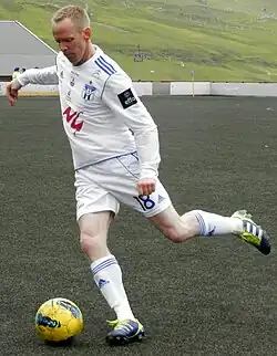 ![]() Heðin á Lakjuni playing for KÍ in 2012. | |||