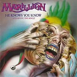 "He Knows You Know" is a song by the British neo-prog band Marillion. It was their second single, with "Charting the Single" as the B-side. It was released from their first album, Script for a Jester's Tear, and peaked at number 35 on the UK Singles Chart. The song's theme is drug abuse, and alludes particularly to intravenous drug use. In concert, lead vocalist Fish would often introduce it as "The Drug Song" and state that it was inspired by drug use while he was working at the Job/Benefits centre in Aylesbury.