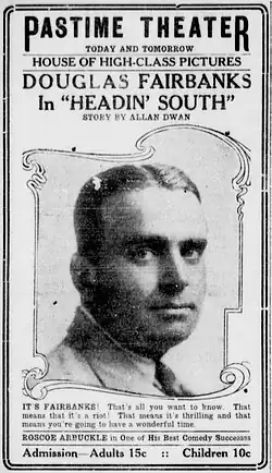 Headin' South is a 1918 American silent romantic comedy film directed by Arthur Rosson with supervision from Allan Dwan and starring Douglas Fairbanks.[1] The film is now considered to be lost.[2]