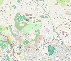 South Parade Baptist church (1908 and 1925, part of Cornerstone Baptist Church since 2020) [25] and Headingley Methodist Church (1840–45 and later extensions) are both grade II listed.[26][27] St Columba's United Reformed church is a modern building, as is the Roman Catholic parish church of St Urban's, located to the east of the area. Hinsley Hall in Headingley is the pastoral and conference centre for the Roman Catholic Diocese of Leeds. The small Lutheran church of St Luke's in Alma Road was converted from the coach house and stable of a Victorian villa.
