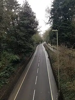 ![]() A view down Headington Hill, along Headington Road, from the bridge which now connects two parts of Oxford Brookes campus. | |