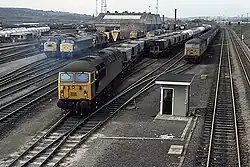 After the marshalling yard closed in 1987, the site was used for storage of trains and locomotives.[17] After the privatisation of British Rail the site was operated by EWS; an assessment was made of a future requirement of six long doubled ended sidings and further short single ended sidings.[18]