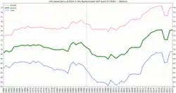 Life expectancy at birth in Belarus was 69 for men and 79 for women in 2016.[1]