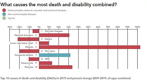 The above figures shows the total top 10 causes of deaths and DALYs (Disability Adjusted Life Years) from 2009 to 2019 in Niger.[11]