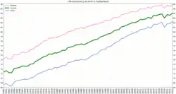 A new measure of expected human capital calculated for 195 countries from 1990 to 2016 and defined for each birth cohort as the expected years lived from age 20 to 64 years and adjusted for educational attainment, learning or education quality, and functional health status was published by The Lancet in September 2018. Switzerland had the twelfth highest level of expected human capital with 25 health, education, and learning-adjusted expected years lived between age 20 and 64 years.[2] According to a study conducted by Swiss insurance company CSS in 2023, about one third of the Swiss "feel unhealthy or ill".[3]