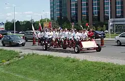 Heart and Stroke operates a number of fundraising events, including the "Big Bike" event, in which 29 riders power one big red bike for twenty minutes.[6] "Jump Rope for Heart" is an elementary school-based fundraising initiative involving physical activities centered around skipping.[7] Jump Rope for Heart celebrated its 35th anniversary in 2017, with close to 4,000 schools participating across Canada. Heart and Stroke's "Ride for Heart" is an annual summer running and cycling event based in Toronto, Ontario, taking place on part of the Gardiner Expressway and Don Valley Parkway, both of which are closed for the event. In 2017, Ride for Heart celebrated its 30th anniversary with 15,000 riders and 5,000 runners and walkers. Its title sponsor is Manulife Financial.[8][9] In 2018, Toronto city councilor Stephen Holyday requested that the event be moved to inner city streets rather than Gardiner Expressway, to ease traffic congestion.[10] Proceeds from Heart & Stroke's annual lottery goes toward supporting grants for research at teaching hospitals and universities across the province of Ontario.[11][12]