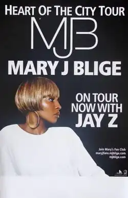 The Heart of the City Tour was a co-headlining concert tour by American singer Mary J. Blige and American rapper Jay-Z.[1][2] The North America tour supports Blige's eighth studio album, Growing Pains (2007) and Jay-Z's tenth studio album American Gangster (2007).[3][4] According to Pollstar.com the Heart of the City Tour grossed over $34.2 million, making it the most successful male-female hip-hop/R&B tour in history. The-Dream was the opening act for the tour, supporting his 2007 debut album Love/Hate.[5]