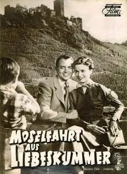 Heartbroken on the Moselle (German: Moselfahrt aus Liebeskummer) is a 1953 West German romantic comedy film directed by Kurt Hoffmann and starring Will Quadflieg, Elisabeth Müller, and Oliver Grimm. It was based on a 1932 novella by Rudolf G. Binding.[1] It was shot at the Bavaria Studios in Munich with outdoor filming in Bayreuth in Bavaria and at various locations in the Rhineland. The film's sets were designed by the art director Rudi Remp.