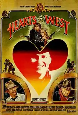 Hearts of the West, released in Europe as Hollywood Cowboy, is a 1975 American comedy film directed by Howard Zieff, released by Metro-Goldwyn-Mayer and starring Jeff Bridges, Andy Griffith, Blythe Danner, and Alan Arkin. A remake of 1932's Make Me a Star, its story revolves around a wannabe Western writer who finds himself cast as a leading man in several 1930s Hollywood B-movie Westerns.