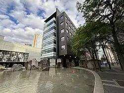 In the 1960s, Toronto Metropolitan University, then known as the Ryerson Polytechnic Institute, expressed an interest in buying the site of the O'Keefe Brewery.[4] The sale was finalized in 1966. The institute used the former bottling plant as the home of the Faculty of Business, and turned the main site of the O'Keefe Brewery into a parking lot.[5] Today, the main site of the brewery is part of 10 Dundas East, a mixed-use development. In 2006, renovations of Heaslip House were completed, and in 2012, the university announced that it would be the new home of the G. Raymond Chang School of Continuing Education.