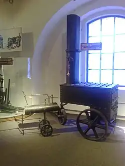 Molten-iron shells were easier to handle and somewhat more effective than the red-hot shot they replaced.[19] A cupola furnace for melting iron was installed on HMS Warrior.[20] The system was declared obsolete in 1869.[18]
