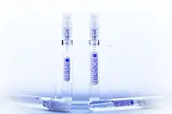 Dewey-Hagborg's work with Stranger Visions and interest in issues surrounding genetic surveillance lead to the development of two products whose purpose is to eliminate DNA traces. The first, Erase, is a bleaching spray that cleans surfaces (e.g., cups, silverware) of DNA evidence. The second, Replace, is a spray consisting of a blend of genes designed to introduce foreign DNA evidence to the surface, therefore masking any of the original DNA remaining in that area.[1][37] Dewey-Hagborg views these as a "citizens' defense against the looming DNA surveillance state."[41]