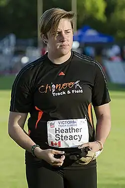 Heather Steacy (born April 14, 1988 in Saskatoon, Saskatchewan) is a Canadian track and field athlete competing in the hammer throw. She competed in the hammer throw event at the 2012 Summer Olympics where she finished 34th. She is the younger sister of Canadian Olympic hammer thrower James Steacy.[1]