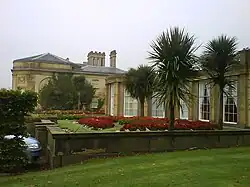 The orangery was added to the house by the 2nd Earl of Wilton around 1823. It was probably designed by Lewis Wyatt as it is similar to his orangeries at Tatton Park and Belton House. It was probably built for the wife of the 2nd Earl, Lady Mary Stanley, who was a keen botanist. It was designed with a domed, glazed roof, fronted by a formal garden with two large copies of the Borghese Vase. The ornate glass roof was removed, to be replaced with a flat roof after Manchester City Council purchased the park in 1902. The orangery is now a function and conference venue, run by Manchester City Council's Hospitality and Trading Service.[31]