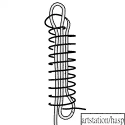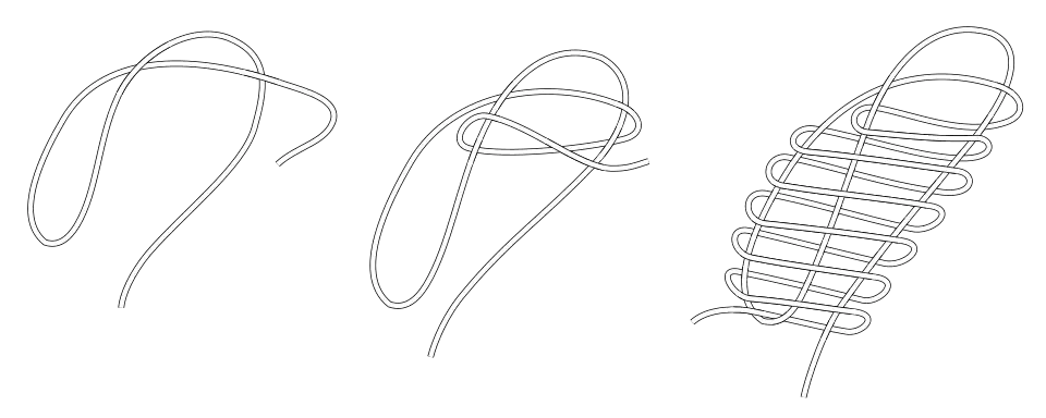 Make a bight in the tail end of the rope. Wrap the working end around the tail toward the bight end, with multiple turns. Complete the knot by passing the tail end through the bight loop.