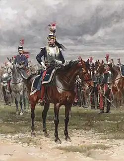 The last time cavalry of both belligerents wore cuirasses in battle was during the Franco-Prussian War. The Imperial German and Russian cuirassiers subsequently discarded this armour for all but parade purposes, but the twelve regiments of French heavy cavalry still in existence in 1914 wore their cuirasses on active service during the opening stages of World War I.[17] Although some heavy cavalry regiments have remained into the 21st century, their large mounts are today used solely for ceremonial duties, such as those of the Household Cavalry in the United Kingdom.