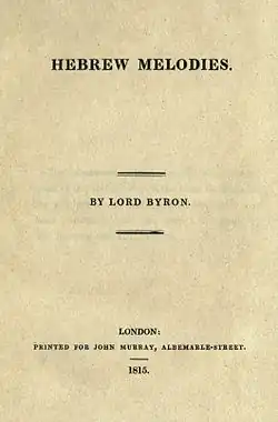 Hebrew Melodies is a collection of 30 poems by Lord Byron. They were largely created by Byron to accompany music composed by Isaac Nathan, who played the poet melodies which he claimed (incorrectly) dated back to the service of the Temple in Jerusalem.[1]