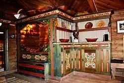 Heddal Open Air Museum is located near the historic Heddal Stave Church. Heddal Museum has various buildings representative of the history of local farming dating from the Middle Ages and up to the 1930s. Fyrileivstugu, a living room interior dating from 1932, was transferred to Heddal Museum in 1990. It was the work of noted wood carver and rosemaling artist, Olav Fyrileiv (1875–1975) who was a Telemark native.[2]