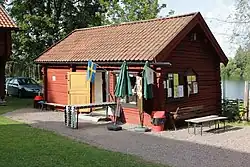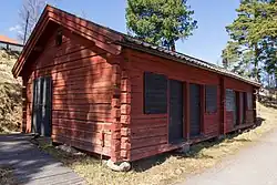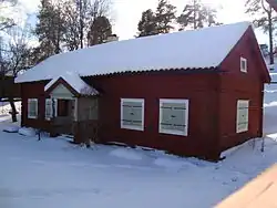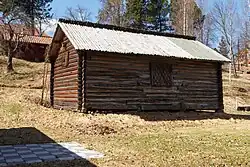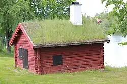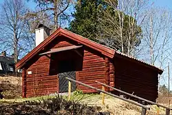 The brewhouse, now used as the kitchen of the cafe, was originally built in 1745 and comes from Mälby in Hedemora parish. I was moved to the gammelgård 1914-1915 and consists of sters (kitchen for brewing and baking) and a maid's apartment. | 60°17′2.63″N 15°58′42.4″E / 60.2840639°N 15.978444°E | Bryggstugan, Hedemora gammelgård |