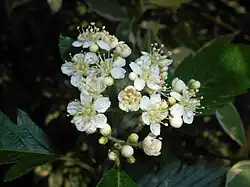 Rushforth in 2018 agreed with Sennikov & Kurtto (2017) changes.[2] European and West Asian hybrid species involving Aria edulis (all) with variously Sorbus aucuparia, Torminalis clusii and rarely Chamaemespilus alpina are treated in Sennikov & Kurtto (2017) under the genera Hedlundia Sennikov & Kurtto (Aria × Sorbus), Borkhausenia Sennikov & Kurtto (Aria × Sorbus × Torminalis), Karpatiosorbus Sennikov & Kurtto (Aria × Torminalis), Majovskya Sennikov & Kurtto (Aria × Chamaemespilus) and Normeyera Sennikov & Kurtto (Aria × Chamaemespilus × Sorbus).[3]