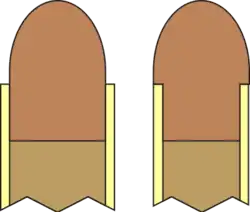 A heeled bullet is a bullet that is necked down at its base to allow a projectile the full internal diameter of a gun barrel to fit in a cartridge case of the same or narrower dimension.[1][2][3] Heeled bullets mostly disappeared with the advent of smokeless powder cartridges,[4] though older rimfire designs, such as the .22 caliber cartridges, still use heeled bullets, and many cartridges that date back to the black powder era still reflect their heeled bullet origins in their caliber designations.