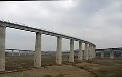 The Hefu PDL connects the Central Plain and the southeastern coast of China. It is one of several projects that the Chinese government has undertaken to develop rail infrastructure along the western shores of the Taiwan Strait. Most of the line runs through mountainous regions, including scenic areas of Huangshan and Wuyi Mountains, both UNESCO World Heritage Sites. Of the 339.4 km (210.9 mi) of tracks in Anhui, 81.6% will be laid on bridges and in tunnels.[1] The longest of the line's 170 bridges and 54 tunnels will be the Tongling Yangtze River Railroad Bridge at 52.05 km (32.34 mi).[1]