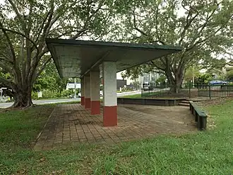 Of the 37 reusable shelters listed as being of the park type only 17 survive: one at Hefferan Park in Annerley; two at Albert Park; two at Wickham Park; one in Buranda Playground in Woolloongabba; two in Raymond Park in Kangaroo Point; and one each at Kelvin Grove, Morningside, Nundah, Stones Corner, and Windsor. Four other shelters stand on East Street and Wickham Street in Fortitude Valley. Most are used as simple park shelters, as intended, but the shelter at Nundah has been modified as a toilet block, and the shelter at Kelvin Grove is used as a bus shelter (as distinct from those shelters in the next category, which were specifically designed as "bus" type shelters). About half of the surviving park shelters had concrete blast walls, while half used brick.[1]
