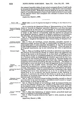 - ^ a b An Act to regulate height of buildings in the District of Columbia (1899), P.L. 55-322