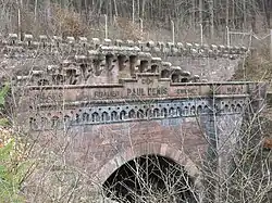 ![]() Heiligenberg tunnel's West portal, with an inscription dedicated to Paul Denis | |