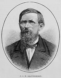 Gravenhorst trained at Wolfenbüttel in 1844 as a school teacher and in 1849 he became a private tutor in Wispenstein and later a teacher at Völkenrode. He married Franziska Bertha Christiana, daughter of deceased surgeon G.J.L. Bielitz, in 1855. He began to lose his hearing from 1857 and was forced to retire in 1860. He then move to Braunschweig to start beekeeping for his livelihood. He studied the works of pastor Dzierzon and August von Berlepsch but also began to examine traditional bee-keeping in the old Lüneburg region. He made us of straw hives that he adapted with Dzierzon frames and called his hive as the Bogenstülper (or tiltable dome). He described this in detail in his 1873 book, Der Praktische Imker, a book which grew in size with each edition. It also began to include biographies of famous beekeepers. In 1874 he visited England and attended the Kilburn Show. He also began a beekeeping periodical called the Illustrierte Bienenzeitung in 1883. In the same year a neighbour sued him for nuisance caused by his bees. He lost the case despite being supported by German beekeepers and was forced to sell off his home and leave Braunschweig in 1887 to settle in Wilsnack. Here he again established apiaries with assistance from his wife and son Hugo. He died in 1898, leaving Hugo to manage the periodical which continued until 1936.[1][2]