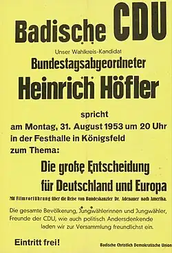 Announcement poster of Heinrich Höfler for the federal elections 1953