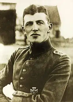 His 20th victory on 18 February[2] brought an award of the Knight's Cross of the Royal House Order of Hohenzollern and made him eligible for the Pour le Merite. The "Blue Max" duly arrived on 29 March 1918.[3]