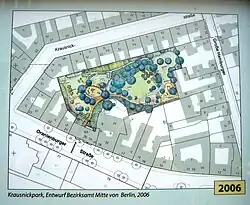 On 7 October 1861 a street in the Spandauer Vorstadt area of Mitte in Berlin was named after him in honor, Krausnickstraße.[6][7] Nearby Krausnick Park, an inner block park between Krausnickstraße, Oranienburger Straße and Große Hamburger Straße has history that goes back to the 18th century and was recently renovated from 2004 until 2007.[8]