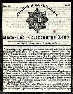 At his death in 1836, having no male heir, the Head of the House Reuss of Greiz passed to his younger brother Heinrich XX.