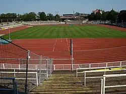 The Heinz-Steyer-Stadion, in Dresden, Germany, is an association football, American football and athletics stadium currently used by the Dresdner SC and the Dresden Monarchs. It has a capacity of about 30,000 but is currently restricted to about 5,000 for football matches (although it had attendances of more than 50,000 people in the 1930s). It was also the first stadium of Dynamo Dresden. It was the venue for Dynamo's first Inter-Cities Fairs Cup match, against Rangers.