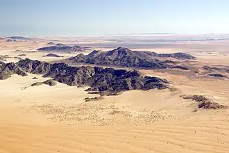 Several parts of the mountain range are covered with sand which is blown there by sandstorms. The average yearly rainfall in this area of the Namib amounts to just a few millimetres.[3][4]