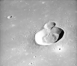Heis is a small lunar impact crater that is located in the western part of the Mare Imbrium. It was named after German astronomer Eduard Heis.[1] It is located to the northeast of the crater Delisle, and south of C. Herschel. Due east is the wrinkle ridge Dorsum Heim. Heis is a circular, symmetrical formation with an interior floor that is about half the diameter of the outer rim. The tiny satellite crater Heis A intrudes slightly into the northern rim.