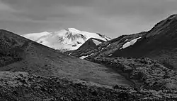 Hekla (Icelandic pronunciation: [ˈhɛhkla] ⓘ), or Hecla,[2][3] is an active stratovolcano in the south of Iceland with a height of 1,491 m (4,892 ft). Hekla is one of Iceland's most active volcanoes; over 20 eruptions have occurred in and around the volcano since the year 1210.[4] During the Middle Ages, the Icelandic Norse called the volcano the "Gateway to Hell" and the idea spread over much of Europe.