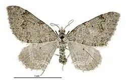 It was first described by William Warren in 1896 using specimens collected by George Hudson in Wellington and named Xanthorhoe farinata.[3][1] In 1912 Louis Beethoven Prout placed this species in the genus Larentia and affirmed this placement again in 1939.[4][5] Edward Meyrick returned this species to the genus Xanthorhoe in 1917.[6] George Hudson followed this placement when he discussed and illustrated this species in his 1928 publication The butterflies and moths of New Zealand.[7] In 1971 J. S. Dugdale placed this species in the genus Helastia and this placement was confirmed by Robin C. Craw when he revised the genus in 1987.[8][1] Dugdale agreed with this placement in his 1988 publication Lepidoptera - annotated catalogue, and keys to family-group taxa.[9] The male lectotype is held at the Natural History Museum, London.[9]