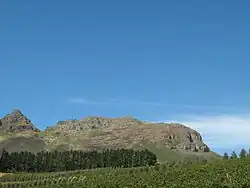 The Helderberg is a mountain of the Cape Fold Belt, east of the main range of the Hottentots Holland Mountains, and south of the Stellenbosch Mountains. The upper parts are Table Mountain Sandstone, on a base of Tygerberg formation rocks and part of the Stellenbosch granite pluton.[2]