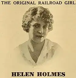 Helen Holmes (June 19, 1892 – July 8, 1950) was an American silent film actress, producer, director, screenwriter and stuntwoman. She is most notable for starring in the 1914–1917 serial The Hazards of Helen.[3]
