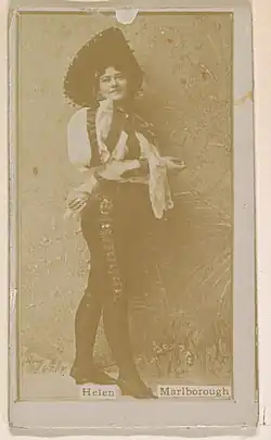 Helen Marlborough (1867 - 1955)[1] was an American stage and screen actress. As a young woman she was slim and svelt but as she aged she was reduced to playing character parts. Marlborough bore a strong resemblance to May Irwin. She started her career in the 1890s performing in several revivals of the play 1492. Her listed appearances in silent films are few though she may have appeared in many films, now lost, uncredited. She died August 27, 1955.