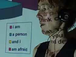 Helen Varley Jamieson is a digital media artist, playwright, performer, director and producer from New Zealand. She "is engaged in an ongoing exploration of the collision between theatre and the internet."[1] Since 1997 she has been working on the internet professionally.[2] In the year 2000 Helen Varley Jamieson coined the term cyberformance. This term is a combination of two words, cyberspace and performance. Jamieson states that "cyberformance can be located as a distinct form within the subsets of networked performance and digital performance, and within the overall form of theatre, as it is a live performance form with an audience that is complicit in the completion of the work in real time."[3]