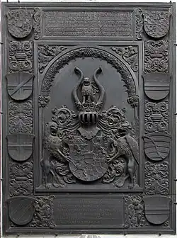 Helene died in 1524 and was buried in Schwerin Cathedral. She was the first member of the ducal family to be buried in Schwerin, until then the dukes and duchesses had been buried in the Doberan Minster.[2] Her epitaph was created by Peter Vischer the Elder. Until 1845, it was attached to the wall behind the altar; today it is located in the south passage, next to the entrance.[3]