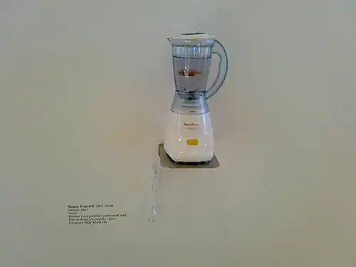 Helena was an art installation by Marco Evaristti originally at the Trapholt museum in 2000. The art was a room with 10 blenders, each of which contained a Green swordtail.[1] The fish were vulnerable to any visitor to the exhibit who chose to turn on a blender and kill them. During the exhibition two fish were killed in this way. Persons present at the initial exhibition of the installation noted that "numerous media representatives who were present... virtually encouraged the visitors to press the button in order to initiate a scandal".[2]