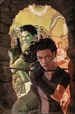 Huntress starred in her own six-issue biweekly Year One miniseries from May to July 2008 by Ivory Madison and Cliff Richards.[6] The story recounts and expands upon the beginning of Helena's vigilante career. She is in Sicily, days from turning 21 and receiving the inheritance from the murder of her family, which occurred before her eyes when she was eight years old. Learning more about her family's murder at the hands of boss Stefano Mandragora,[7] Helena adopts a costume disguise and weaponry to seek revenge, confronting not only the men who ordered her family's death but the assassin himself.