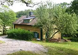 In the second half of the 19th century, the house at Lille Skuggan was the summer residence first of the architect Axel Nyström, and then of his fellow architect Fredrik Wilhelm Scholander. Scholander's daughter Ellen married the artist Julius Kronberg,[9] who became a permanent resident of Lilla Skuggen and had a studio built there in 1889 to his own design; it was completed in 1912 by the architect Jacob J:son Gate. A ceiling painting in the main house dates to Kronberg's residence there.[9] Kronberg became known for his monumental works at Stockholm Palace and Hallwyl House, among others; after his death in 1921, Countess Wilhelmina von Hallwyl bought the studio and all its furnishings and donated it to the open-air museum at Skansen. A photograph of the interior is on the cover of ABBA's album The Visitors.