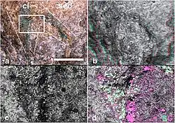 Later research disputed this interpretation. In their reanalysis of the holotype, Murdock et al. found that despite what was originally claimed, the holotype patch was flat and showed no relief. They also found that it was chemically indistinguishable from other dark patches, only composed of siderite and some framboidal pyrite. Notably, this patch lacked any traces of a carbon film, something expected of preserved jaws.[3]