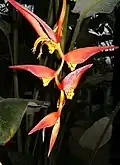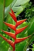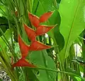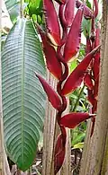 Heliconia is a genus of flowering plants in the monotypic family Heliconiaceae. Most of the 194 known species[3] are native to the tropical Americas, but a few are indigenous to certain islands of the western Pacific and Maluku in Indonesia.[2] Many species of Heliconia are found in the tropical forests of these regions. Most species are listed as either vulnerable or data deficient by the IUCN Red List of threatened species.[4] Several species are widely cultivated as ornamentals, and a few are naturalized in Florida, Gambia, and Thailand.[2]