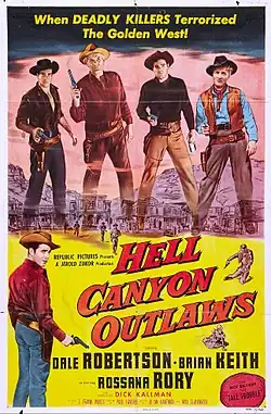Hell Canyon Outlaws is a 1957 American Western film directed by Paul Landres and written by Allan Kaufman and Max Glandbard. The film stars Dale Robertson, Brian Keith, Rossana Rory, Dick Kallman, Don Megowan and Mike Lane.[1][2][3] The film was released on October 6, 1957, by Republic Pictures.